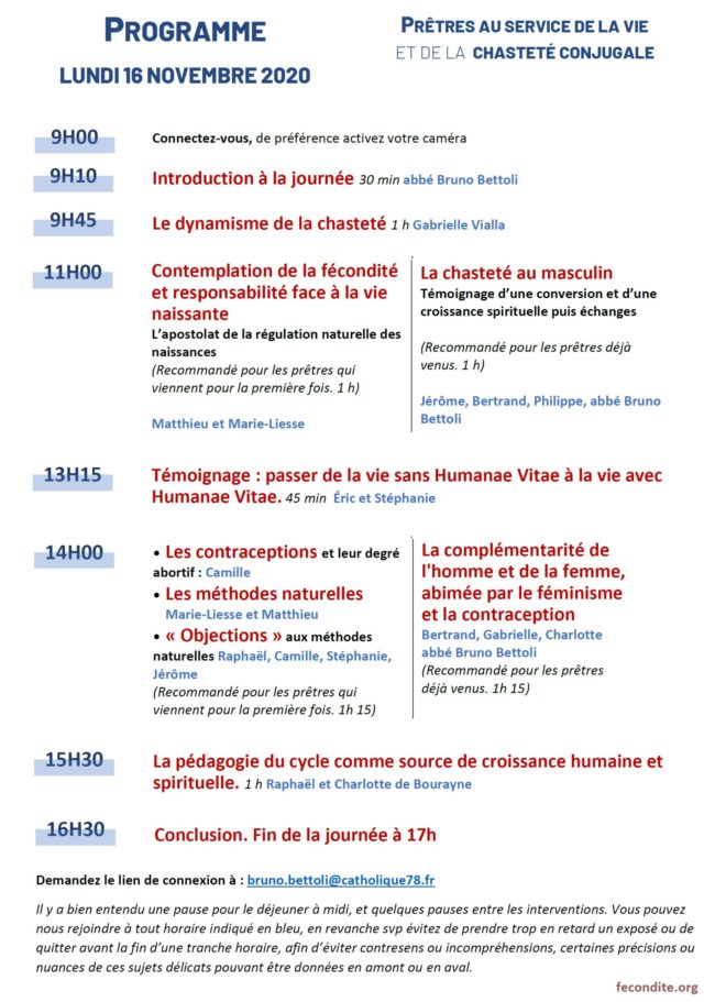 La journée prêtres du LUNDI 16 NOVEMBRE 2020 se fera à distance, avec ZOOM (visioconférence permettant aux participants de réagir). Contre mauvaise fortune bon cœur : cela peut permettre à des prêtres qui habitent (très) loin, ou qui ont un emploi du temps chargé, de participer ! Renseignements et Inscriptions : bruno.bettoli@catholique78.fr À diffuser et…