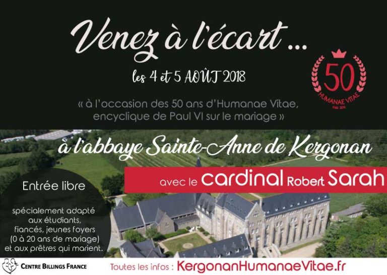 - Le Cardinal Sarah, préfet de la Congrégation pour le culte divin et la discipline des sacrements, lors d’une courageuse conférence « Humanae Vitae, voie de sainteté pour notre temps », à écouter ici, nous rappelle le caractère vertueux de la régulation naturelle des naissances et la nécessité d’y soumettre notre intelligence et notre cœur. Un art de vivre en découle, qui nous mène vers un mode proprement conjugal de la sainteté.